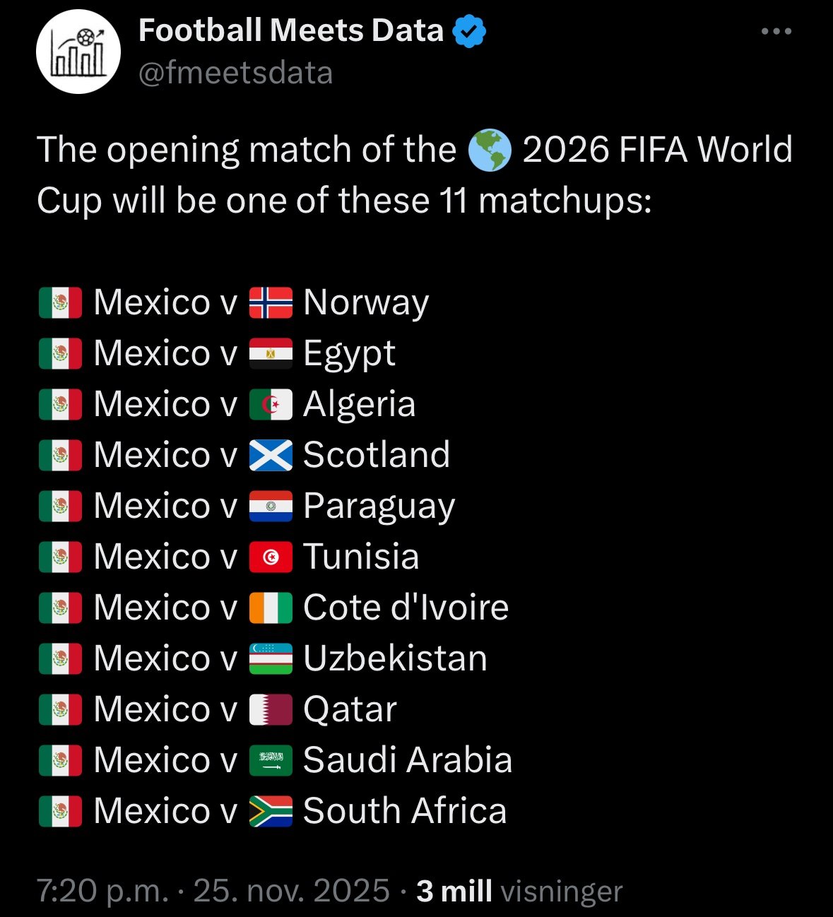 Åpningskampen vil gå på mer enn 2200 meter over havet. Guadalajara ligger på litt over 1500 meters høyde mens Monterrey kan du fjerne tallet 1 fra Guadalajara sin høyde over havet.
