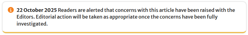 Studien er flagget med følgende: Jeg ville avventet resultat av undersøkelsen rundt bekymringer knyttet til artikkelen, før jeg eventuelt ville lagt vekt på den.