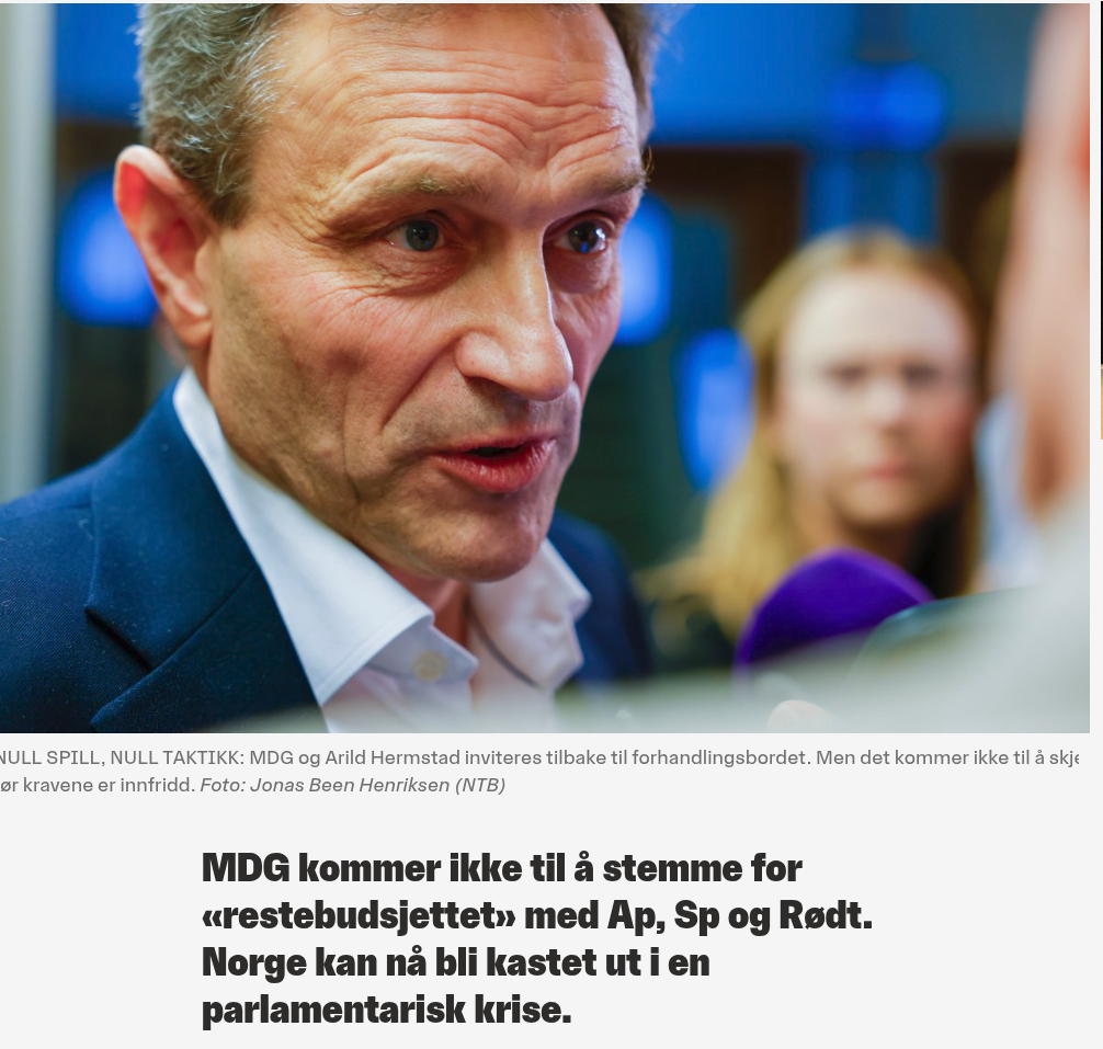 Syns ikke man skal skylde på sv og mdg for dette. De må kunne stille krav skal de være med å støtte opp og få gjennom ting. Problemet er jens og jonas sin arroganse der de tror de kan gjøre hva de vil på egen hånd helt uten konsekvenser.