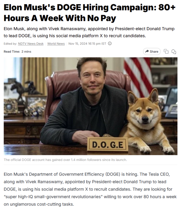 Legg til at to personer skal lede "Department of Government Efficiency" og ironien er komplett.6 poeng