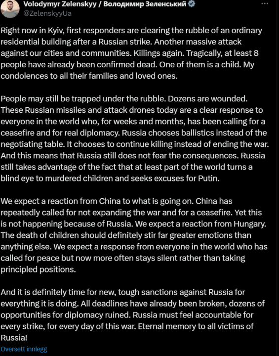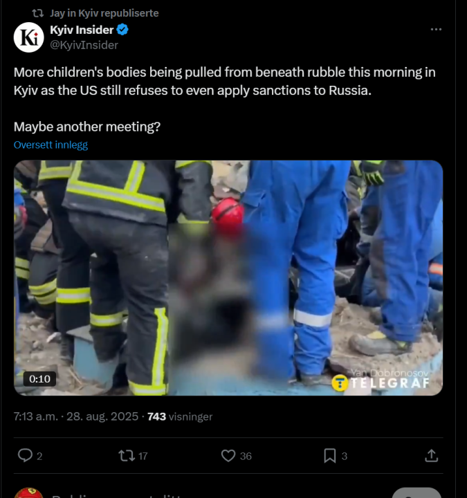 Synes Støre har vært veldig tydelig om Ukraina jeg. Solberg også. Når det kommer til Listhaug er det først nå helt i det siste at hun har uttalt seg noe særlig, på grunn av valgkampen. Jeg må si at jeg ikke har noe tiltro til henne på utenriksfeltet, ei heller Ukraina. Å se for seg henne reise til Ukraina, møte Zelensky, forhandle i NATO-møter osv. synes jeg er ganske vanskelig. Norge har nå et fantastisk forhold med Zelensky, håper det fortsetter etter valget uansett hvem som vinner.8 poeng