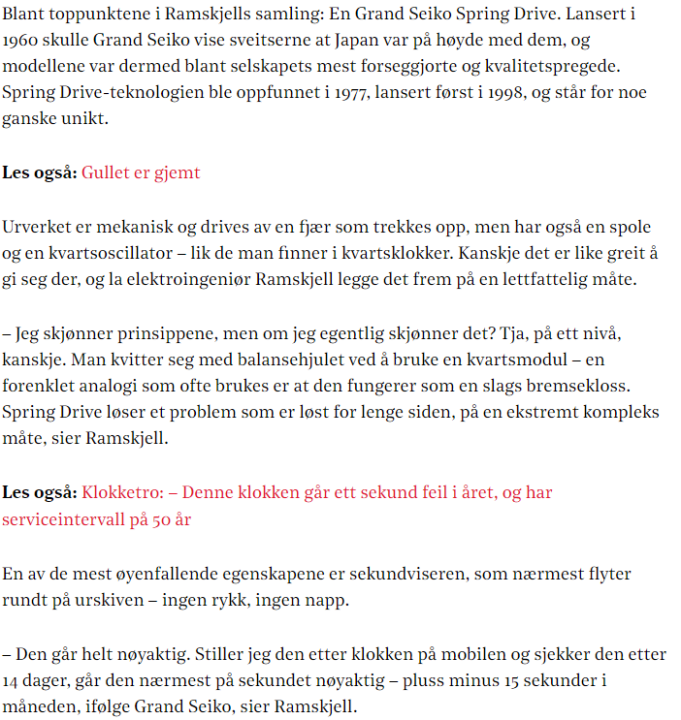 Bak betalingsmur, men poenget er: Spring Drive er den ekstremt komplekse løsningen på unøyaktige mekaniske ur - et problem som egentlig er løst med billig quartz for flere tiår siden😀 Klokken er en SBGA201, som har veil på noe over 50k, antagelig ca 30k brukt.