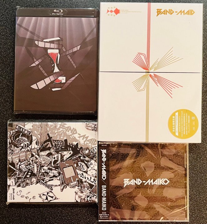Ny pakke fra Amped Japan i Yokohama: Band Maid: Live - Online Okyu-Ji (Feb. 11, 2021) Blu-Ray Tokyo Garden Okyuji (Jan.9, 2023) 2xBlu-ray + fotobok Sense - CD singel med en online live konsert på bonus Blu-ray Band Maiko - Band Maiko