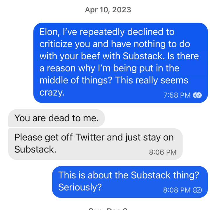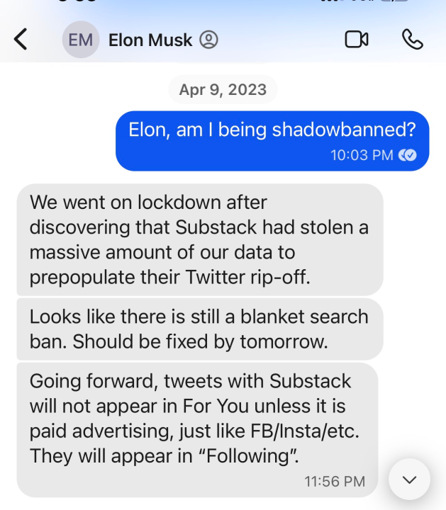 Det er greit å seg inn i hvordan Twitter Files var løgnpropaganda og konspirasjonsteorier blåst opp og ut over alle proporsjoner fra ende til annen ja. Noe jeg håper de fleste har gjort, selv om det var åpenbart at Musk og co løy. https://techcrunch.com/2023/01/13/deconstructing-the-twitter-files/ Hvis noen vil se Matt Taibi bli spikret opp på veggen som barnet han er; Fun fact: Matt Taibi ble shadow-bannet av Musk, og Musk sa at Taibi er 'død for ham'.
