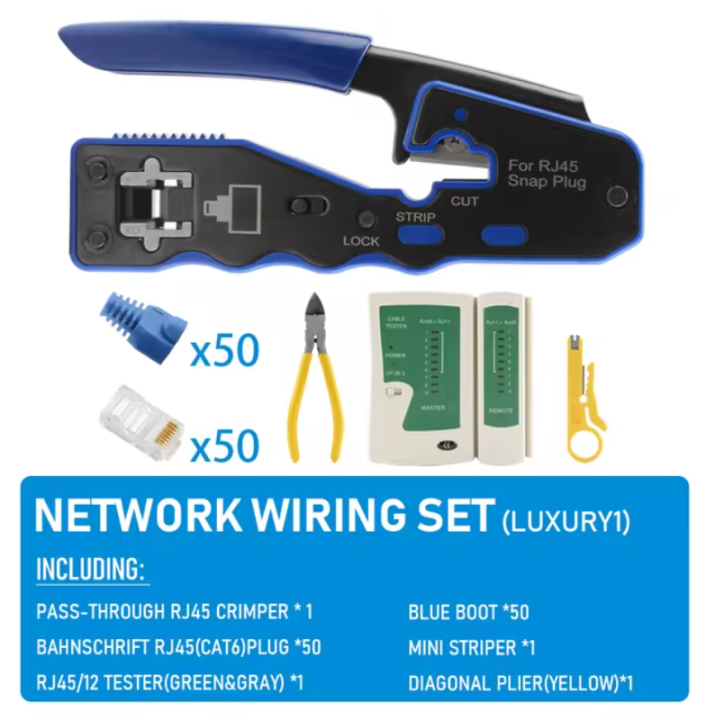 RJ45 Tang? Variant som både klemmer til riktig moment og som klipper ledere (passer til såkalt RJ45 pass-through som jeg har lest er et smart valg)?