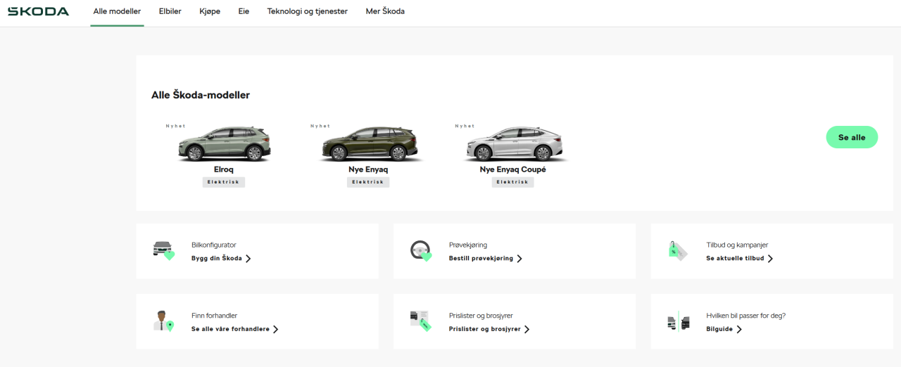 Det er like trist hos Skoda Norge: Skoda har mange fine modeller som ikke er elektrisk, som for eksempel Superb, Octavia, Fabia, Scala, Kamiq, Karoq, Kodiaq, Kushaq, Kylaq, Ingen av disse selges lenger i Norge fordi staten har bestemt det. Det samme gjelder resten av VAG og andre konsern, der de fortsatt lager mange fine biler som vi nå må privat-importere.- 146 svar