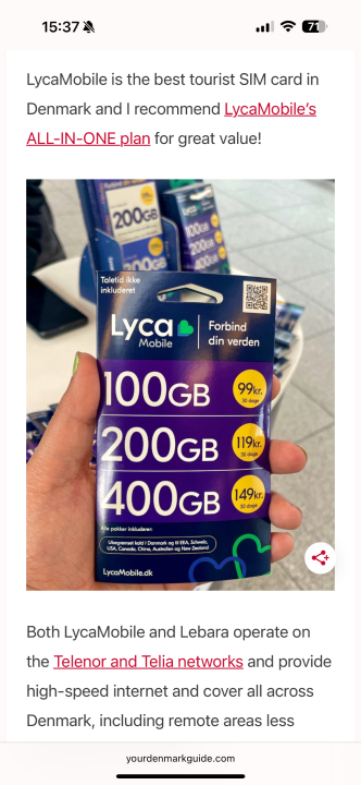 Ifølge https://yourdenmarkguide.com/prepaid-sim-card-in-denmark/ så er LycaMobile og Lebara de eneste som tilbyr kontantkort med data uten at du må registrere deg med dansk personnummer. Uten at jeg kan gå god for informasjonen så anbefaler vedkommende LycaMobile sitt tilbud: -