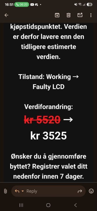 Jeg fikk estimatet 5520,- for min S22 Ultra