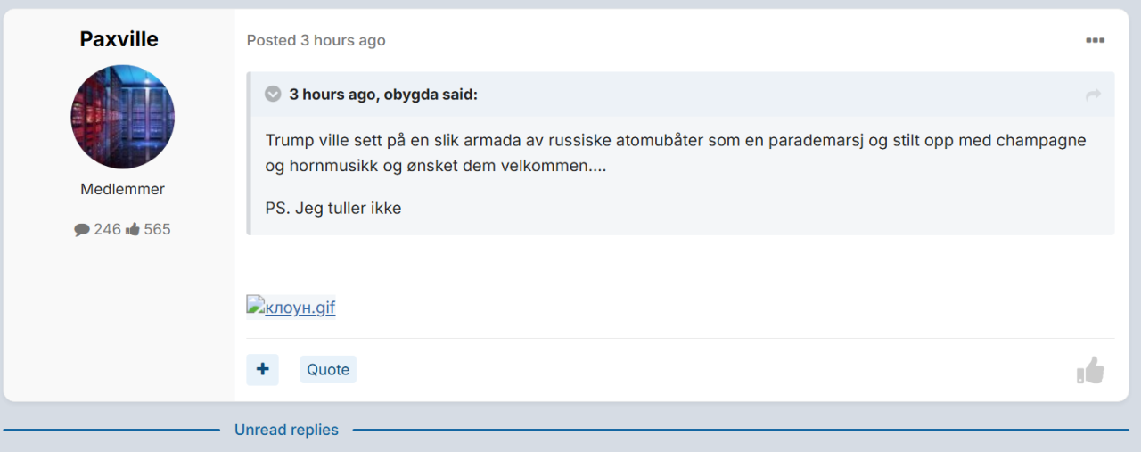 Trump og Vance er to drittunger i voksen kropp. Zelensky må føle som om han er på besøk hos to bortskjemte og ikke helt oppegående skolegutter. Kudos at han holdt seg rolig så det var ihvertfall en voksen i rommet. USA har aldri vært svakere eller sett dårligere ut enn nå, for et møkkaland som velger dømte og dumme folk til slike posisjoner. Kast dem ut av NATO, hvem er det egentlig vi er redd for? Russlands økonomi er på størrelse med Nederlands på en god dag!