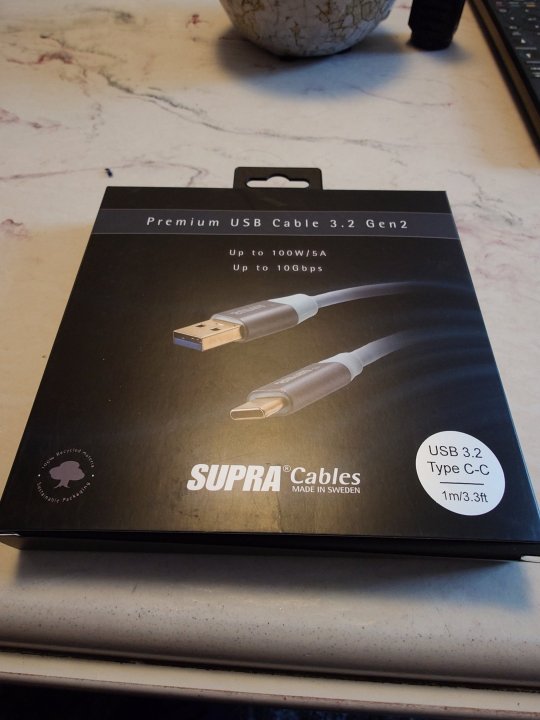 Ny "rimelig" usb kabel til Cd spilleren jeg skal bruke til Hodetelefon anlegget mitt. Supra Premium High Speed usb C-C kabel, også mer praktisk om jeg vil bruke mobiltelefon som kilde.