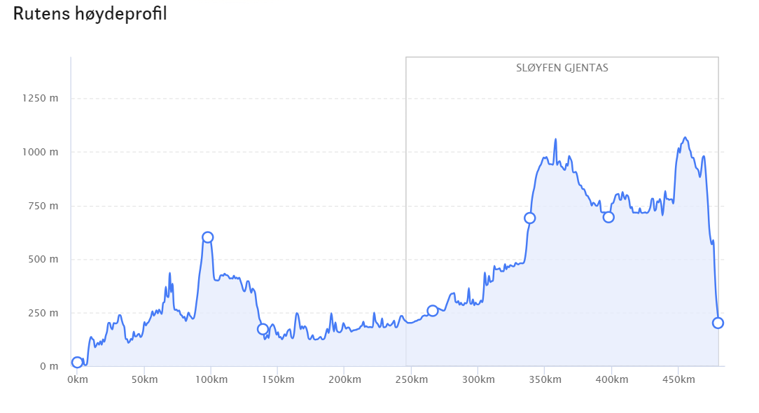 Ser forresten på løypeprofilen at den største bøygen er mellom 334 km og 358 km. Det gjør nok sitt til at mange bøyer av etter den kneika. Så kan kanskje man være kritisk til de møy "høyt" tap som ikke rekker frem til det punktet, deriblant nevnte Toyota. Så kanskje kritikken likevel var noe fortjent. Ford F1 Lightning med 337,5 rakk altså bare så vidt å starte den bratte klatringen.
