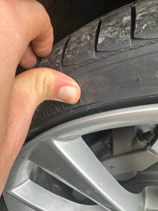 Hva tenker folk? Kjøpte ny bruktbil fra forhandler i Februar med «nye sommerdekk». Satt disse ubrukte dekkene på i går og ser den ene har en 3-4cm rift på siden. Er det forsvarlig? Forhandler mener det er null problem, mens jeg mener dette dekket burde byttes? 😶🌫️