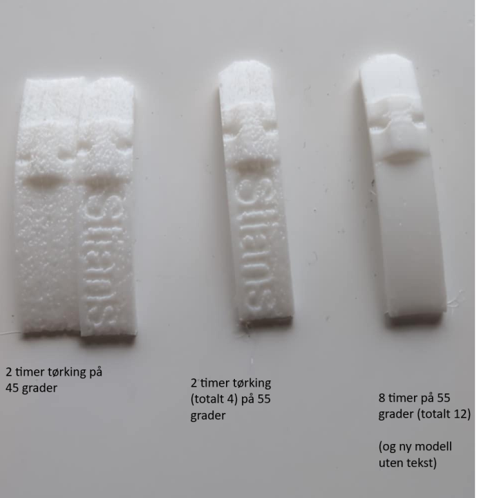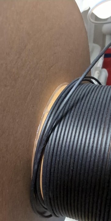 En ting jeg gjør når jeg sliter med å feilsøke er å bruke noen default profiler på sliceren. Ofte har jeg gravd meg ned i et hull som er vanskelig å komme ut av. Om ikke annet så snevrer det området som er feil. Jeg hadde en ny feil her om dagen som jeg ikke har erfart før. Virka som tett dyse, ekstruderen hoppa og ville ikke mate ut. Viste seg at limet fra pappen på rullen hadde smitta over på filamentet og holdt den fast (Har løsna det på bildet).