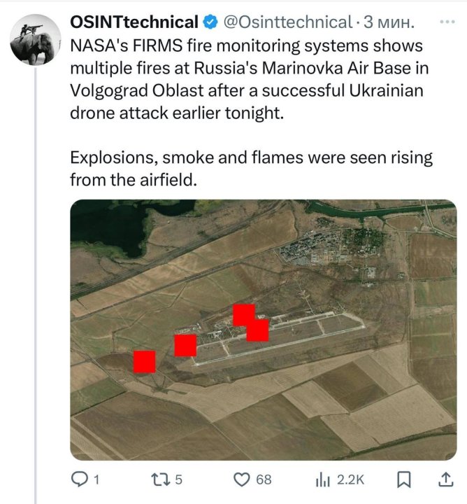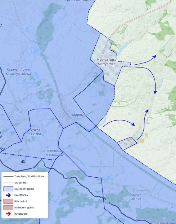 Kilde (Denys telegram) https://t.me/pilotblog/15108 Kursk - Martynovka axis ➡️The AFU took control of Martynovka and pushed further east. ➡️It established itself in the southern part of Russkaya Konopelka. ➡️Attacks towards Pushkarnoe are already happening from two sides. Russian servicemen taken captive by AFU units VID_20240822_045733_723.mp4 Another video of the moment of the UAV attack on the Kalachevsky district of the Volgograd region Preliminary, after the attack, the military airfield "Marinovka" in the village of Oktyabrsky is on fire, local residents report. VID_20240822_050049_335.mp4 VID_20240822_050044_587.mp4 Another video of the moment of the UAV attack on the Kalachevsky district of the Volgograd region Preliminary, after the attack, the military airfield "Marinovka" in the village of Oktyabrsky is on fire, local residents report. Edit 05:34