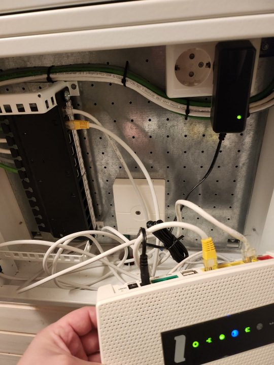 21. Selv om jeg ikke har peiling, har jeg fått med meg forskjellen mellom mesh og flere aksesspunkter. Jeg tror ikke problemet er at jeg hopper mellom de to punktene. Asusen i stuen har 90 % av tiden best dekning, og er den jeg har satt som førstevalg. Inteno-ruteren står i et metallskap, med både vegger og dør av metall. Jeg har tidligere hatt denne på veggen utenfor skapet, men det utgjorde ingen merkbar forskjell, så jeg satt den inn i igjen i skapet for å slippe å ha ledningene i klem i døråpningen. Så ja, jeg tenker en ny og moderne router i stuen skal løse problemene, men jeg vet ikke hva jeg skal kjøpe.