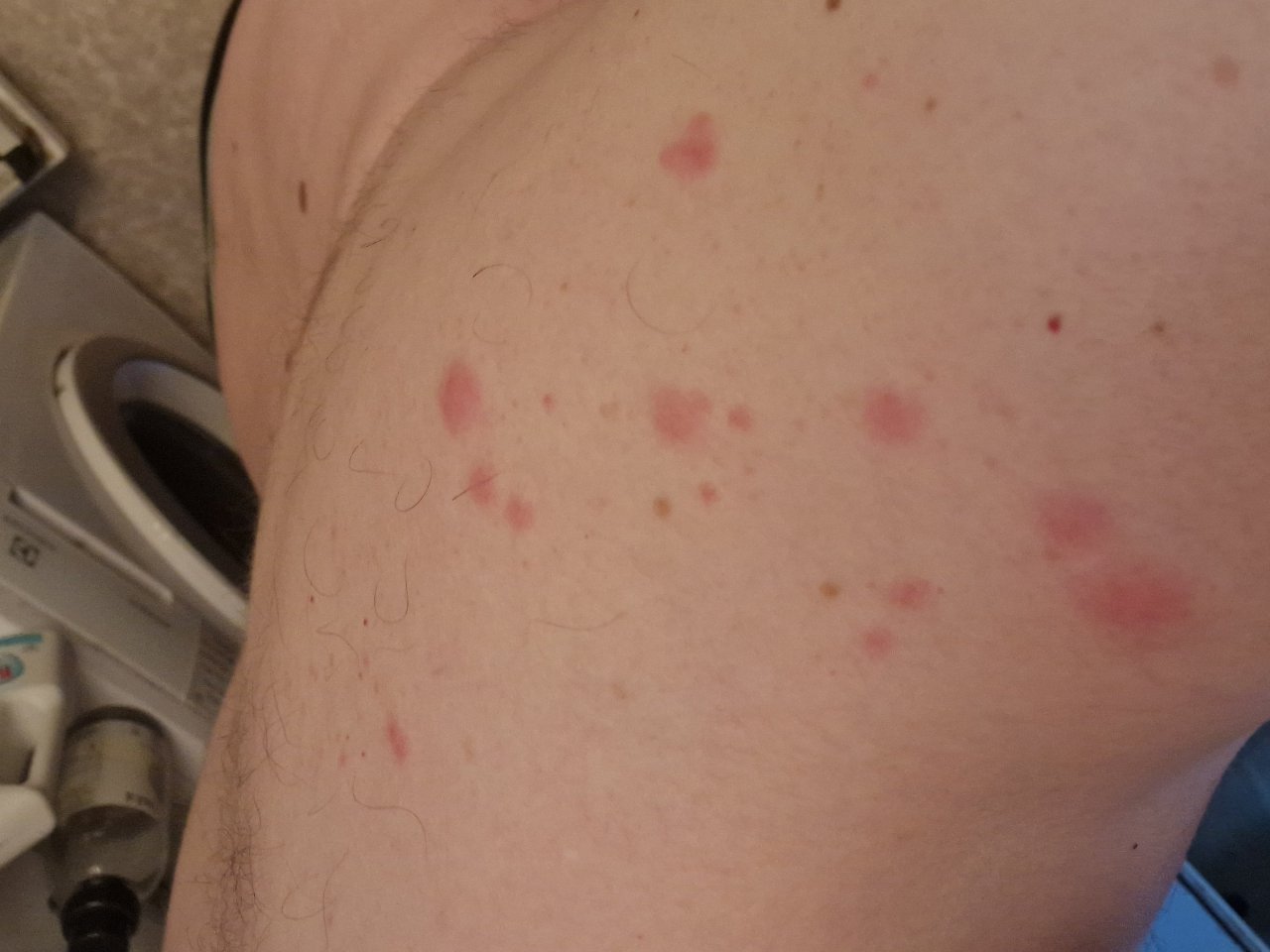 Var en tur ute i Østmarka igår, ble bitt av noe på toppen av skuldrene og under en arm. Kjenner ikke helt til disse merkene. Virker ikke som mygg eller knott i mine øyne. Noen som vet?