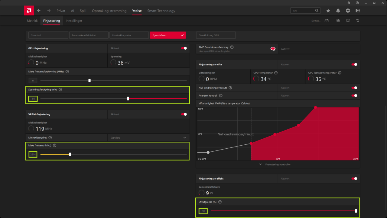 @JarleGutt du må nesten bare prøve deg frem da ingen kort undervolter/klokker likt. Test det han her har satt som sin "safe" settings, er det stabilt så senk med 10 mV om gangen til det kræsjer i spill, øk så med 10 mV til det er stabilt.