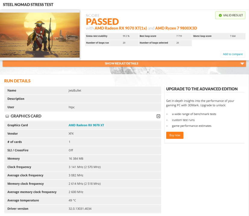 Hvilken score har dere i 3dmark Steel Nomad? synes boost på mitt kort kunne vært høyere