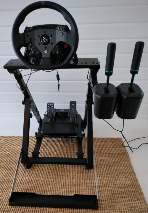 Da er Logitech sekvensiell gir og håndbrekk på plass i min Logitech Pro Racing DD rigg(rigg nr1, har 2). Bruker Next Level Racing 2.0 Stand på denne også, men feste til disse passet dårlig så da må man lage en brakett Stor takk til Lars Helge og Henrik på jobben som har brukt sine pauser til å hjelpe meg med dette