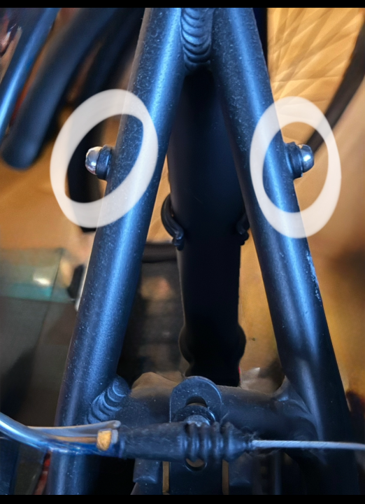 Ser for meg ut som at den sykkelen mangler festepunktene foran, sykkelens konstruksjon har ikke mulighet for disse som vises på siste bildet.