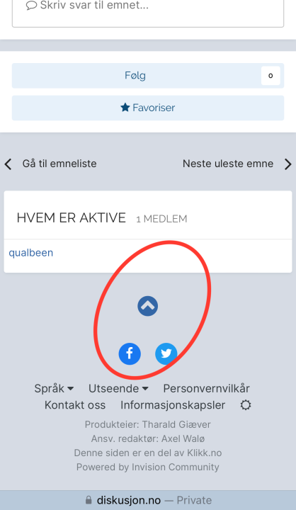 23. Ser ikke flytende ‘back to top’ men ser ikon for ‘back to top’ nederst på siden. iOS 16.7.2, Safari, Edge, Chrome på iPhonen. Samme opplevelsen på en eldre Tab A 2016 med Edge.