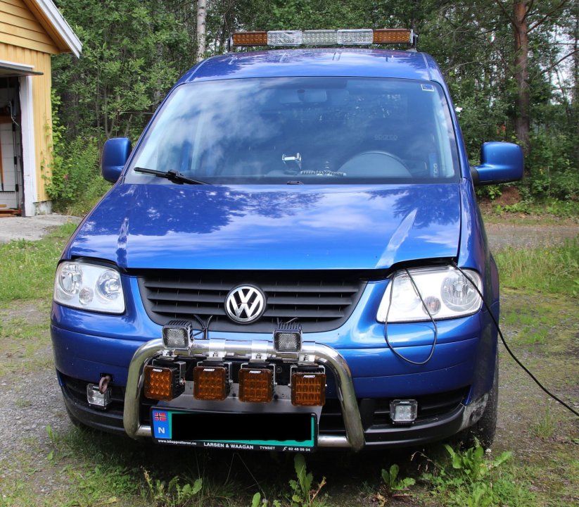Her er ca. hva jeg har på bilen av ekstralys: Hadde en..."gjennomgang" i januar, så halvparten er byttet ut. Grøftelysene og "arbeidslysene" (nederst til hver side og over lysbøyle) er de jeg refererte til. Alle er nå byttet. Grøftelysene er nå typegodkjent og E-merket, og arbeidslysene har nå et smalt lysbilde - ingen som blinker på meg når jeg kjører med dem i mørket, så antar det er greit. LED-baren på taket er nå en Lazer Triple-R Elite 24 (den gamle røk 2 uker etter PKK), med rundt 27.000 Lumen. Den er forferdelig å møte hvis jeg ikke gjør jobben min bak rattet. Montert som arbeidslys, men koblet over ratthendel og brukes som ekstralys (teknisk sett, ikke lov) når det passer seg. Har montert gule filtre (anbefalt) som både demper lysmengden og endrer fargen så det er mer behagelig å kjøre, mindre vondt å møte, pluss at det kaldhvite lyset fra andre biler skjærer i gjennom lyset mitt i svinger så jeg kan få blendet ned allerede før jeg møter dem.