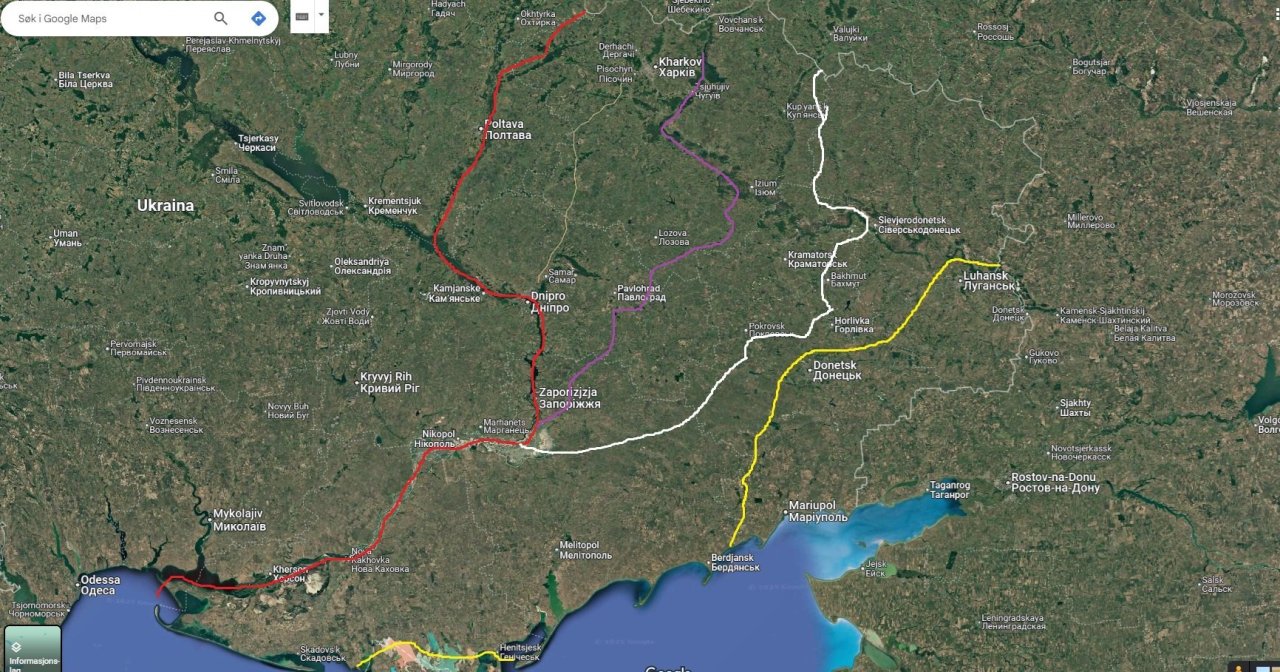 Hvor tror folk landegrensene vil gå når det til slutt på ettellerannet tidspunkt blir fred? Hvit er omtrentlig dagens grense. Gul er tilnærmet grensen etter annektering og før invasjon + Mariupol. Et sted mellom hvit og lilla er det jeg ser på som mest sannsynlig. Rødt er det jeg gjetter hvis krigen foregår i 2-3 år til og krigstrettheten slår til for fullt. Det er fascinerende at det fremdeles eksisterer stillstandskrig i 2025.. Tviler på at det var mange som kunne gjettet det for ti år siden. -