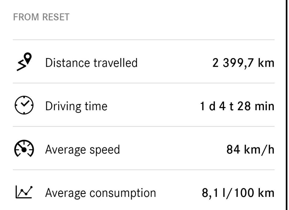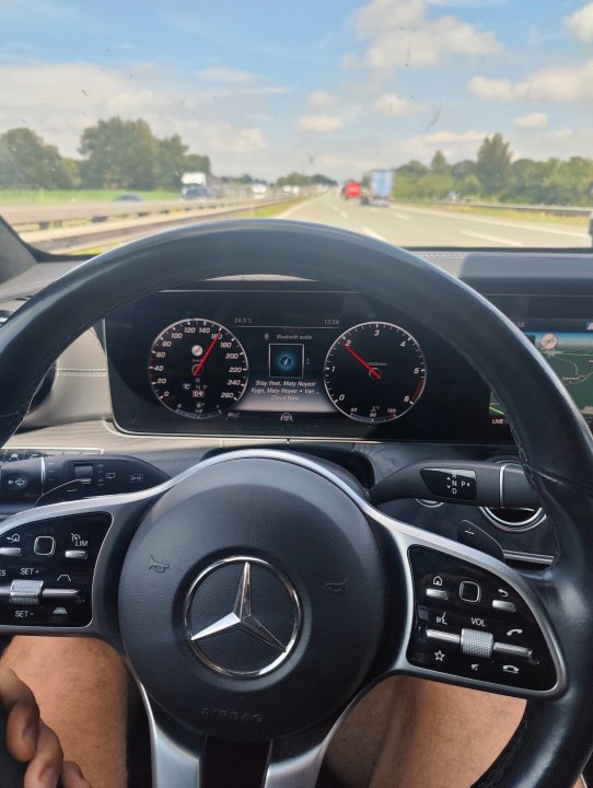 Tilbake fra 2400km nedover Europa, og en drøm å kjøre. Endte opp på 8.1L/100km med fullastet bil 4 personer + mye bagasje. Mye kø i Tyskland, men en del cruising i 170km/t og klarte nå 260km/t. På returen i normal fart gjennom Danmark fikk vi forbruket nede i 6L/100km siste timene i 120km/t. Ikke dårlig sammen med komforten og all plassen, og 'autopiloten' gjorde kjøringen til en lek og går så langt som å bytte fil også 🫡 en time på trafikkert landevei forbi køen på Autobahn gjorde jeg vel ikke stort annet enn å holde slapt i rattet og følge med uten å røre pedaler eller styre. 170km/t med 2000 i turtall så motoren har sjeldent blitt lagt merke til Min første Mercedes, men en skjult perle av en familiebil
