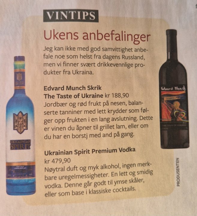 Ikke reklame, men anbefaling fra ukens Vi Menn. Bestilte akkurat Ukrainian Spirit. Utrolig stilig flaske. -