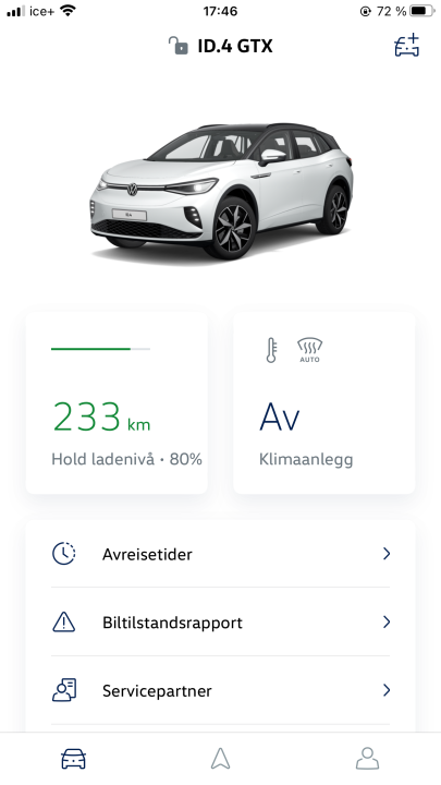 Kjøpte brukt ID4 Gtx 22-modell, snaue 3 år gammel nå. Brukt 2 mnd ca. Veldig fornøyd - men rekkevidde... 80% er 233km viser den i app. Altså er 100% regnet frem til snaue 300km. WLTP som reklameres med er 476 km. 300km rekkevidde på 100% er ca 63% (!) av 476 km. Ja, det er vinter og kjører med piggdekk. Men er dette normalt? Har enda til gode å kjøre på sommer og se forskjellen.
