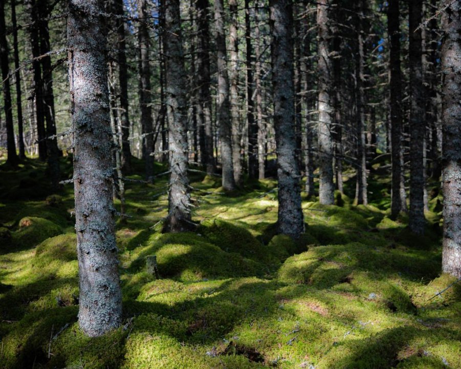 Linepusle: 5 flotte lysstriper på trestammene, 7 du fikk virkelig frem skogbunnen, 9