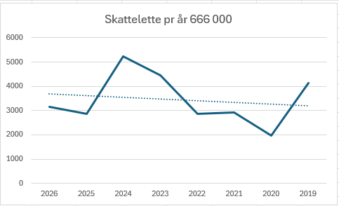 Enig, skatten er for lav og "vi" som tjener godt får majoritenten av kaka hvert år. Synes det er helt forkastelig. Gi det til de som sliter. Forøvrig kan vi se skattelette pr år med 666 000 som diskutert tidligere: Har vært jevnt over 2-5000 pr år så 3000 i år er helt etter forventningene. Kanskje noe under det en kunne håpe på, men absolutt innenfor historien. Ingenting å være overrakset over. Forøvrig synes jeg det er alt for mye. Det burde gått til de som tjener 300 000.
