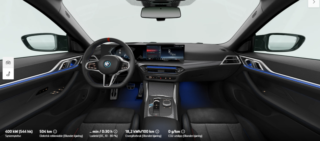 Joda sant det. Sjekka nettopp selv konfiguratoren på I4 M50, med "vanlige seter". Til 599.900 ser den slik ut innvendig:
