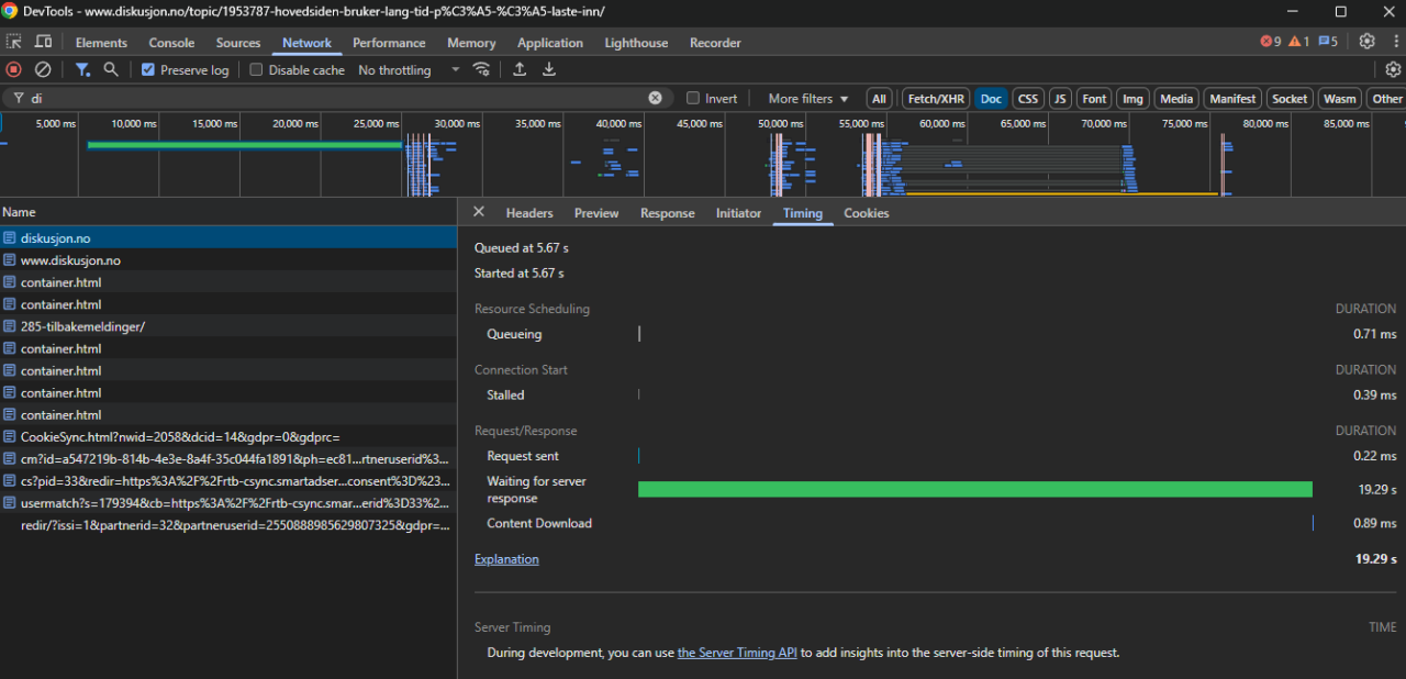 Hovedsiden bruker lang tid på å laste inn