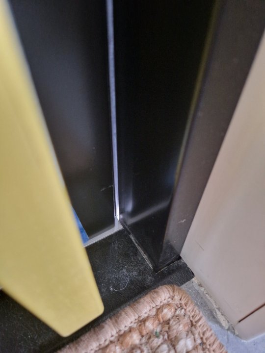 Vil meddele at det ordnet seg. Det gjaldt en Harmonie Nora-dør, og det viser seg at det ikke leveres formgaranti på sorte dører siden de ikke tåler å bli utsatt for sterkt direkte sollys. Denne døren har ettermiddagssol og kveldssol. Ettersom butikken ikke opplyste om dette da handelen ble gjort, har de gått med på å ta døren i retur.