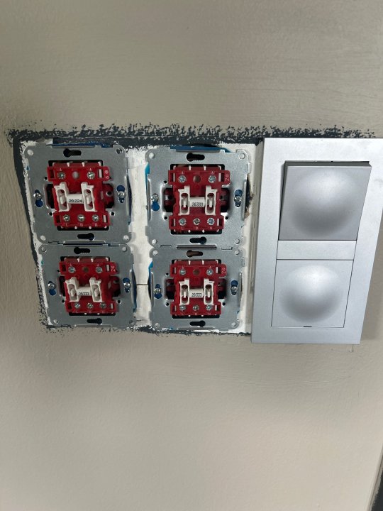 Har en relativt uproff løsning på mine Hue lamper i stua. Hue lamper har egne brytere fra Hue eller Niko, men strøm til Hue må slås på fra lysbrytere. (Lysbryterne står alltid i på stilling, mens lampene slås på og av ved Hue bryterne.