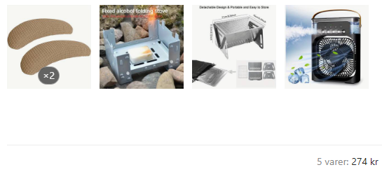 Har brukt Temu et par ganger nå - og må faktisk si jeg er smått imponert. Men jeg er litt ambivalent. På en side setter jeg pris på en god handel, på en annen side er jeg fullstendig klar over karbonavtrykket, undertrykkelse av norsk handelsnæring, uregulert produksjonslinje med alt det måtte medføre av giftstoffer og sikkerhetsrisikoer, og finansielt støtte CCP som driver med mye rart jeg ikke kan stå innafor. For 274 kr,- fikk jeg altså følgende: - En fiffig vifte, du heller på isvann og viften tar med seg kulden på overraskende effektiv måte. - En liten kvistbrenner (angivelig rustfritt stål) - En større sammenleggbar grill (angivelig rustfritt stål) - Fire armlenebeskyttere til T3'er. Vifta imponerte.... stor i størrelse, lysene virket ikke... men alt annet virker bra. ^^ Men prisene er ganske yoyo-aktige... da jeg bestilte, kostet den 100 kr,- Nå ligger den på 200 kr,- + På Aliexpress fant jeg den til 45 kr,- Men da fra en tvilsom selger... Så tja. Usikker.- 68 svar