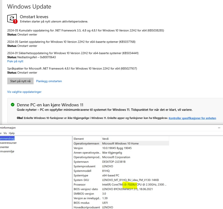 Noen andre som har opplevd dette? Kjørte nettopp reinstall av Windows på en maskin med i3-7020U jeg hadde liggende, og den står nå og oppgraderer til Windows 11 uten at jeg har gjort noe. Benyttet Media Creation Tool, så er er umodifisert installasjon direkte fra MS.