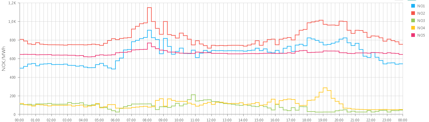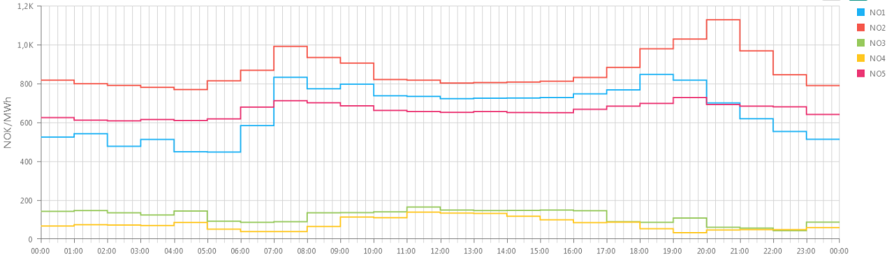 I dag 30. september er siste dag før norgespris-støtte tilbys. Næringslivet får opp mot 113 øre/kWh etter kontortid i dag: kl 20-21 I mårra 1. oktober tilbys norgespris-støtte for første gang. Samtidig innføres prising pr kvarter. Næringslivet får opp mot 115 øre/kWh kl 08.00 - 08.15. -