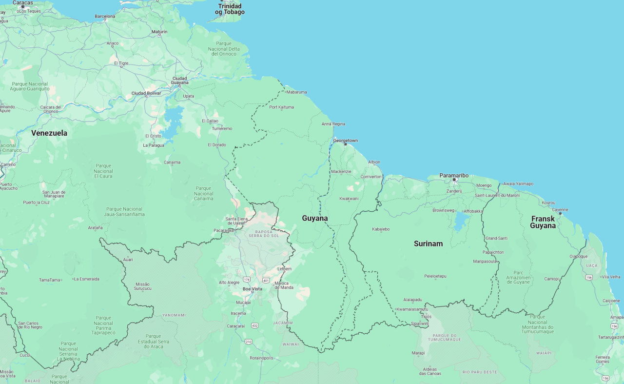Norske medier har så vidt jeg vet ennå ikke fanget opp den intense grense-spenningen mellom Venezuela og Guyana, men jeg finner engelskspråklige nyheter fra Guyana her: https://www.stabroeknews.com/ https://guyanachronicle.com/ https://www.kaieteurnewsonline.com/ https://www.inewsguyana.com/ Oppsummering: - Den internasjonale domstolen i Haag (IJC) blokkerer Venezuela fra å krenke nåværende grense mot Guyana og ber de respektere at Essequiba er underlagt Guyanas suverenitet, med en avtale fra 1899 som juridisk grunnlag. Hele dokumentet fra IJC i PDF format. - Caribbean Community (CARICOM) støtter IJC - Jamaica støtter IJC - Brazil støtter IJC og øker sin militære tilstedeværelse ved grensepunktet mellom de tre landene. - Guyanas president Irfaan Ali støtter (selvsagt) IJC - Irfaan Ali møtte Indias president Modi i går, fredag 1. desember under COP28 toppmøtet i Dubai, og hadde samtaler om blant annet grensekonflikten. - Venezuelas Maduro hevder landet ikke anerkjenner FN-traktaten og den internasjonale domstolen i Haag. - Venezuela hevder Essequiba er deres og at det er Guyana som krenker deres grenser. (Har vi hørt slik projisering før et annet sted..? )