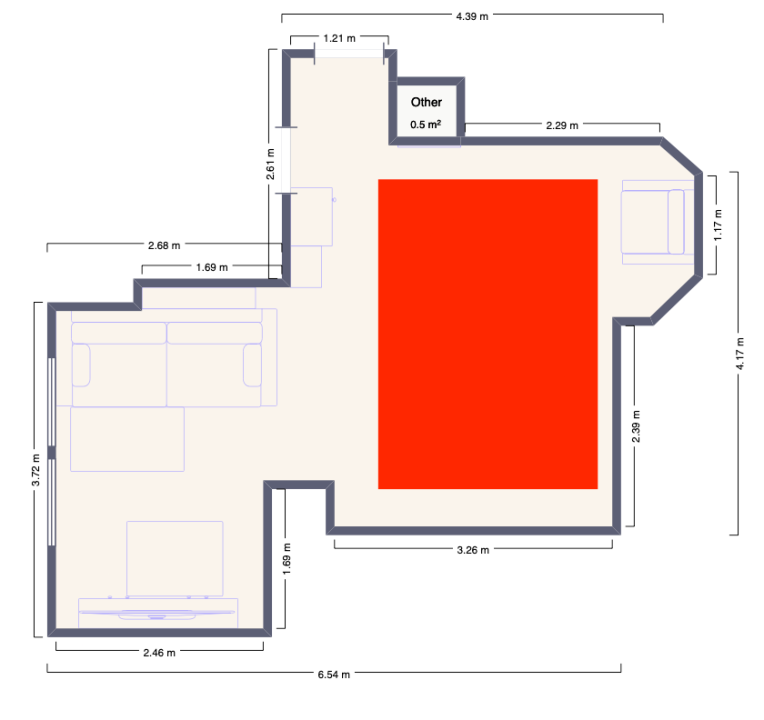 Noen som har erfaringer med Denon og deres multi zone funskjonalitet? Jeg har en kjellerstue, som ser omtrentlig ut som på bildet nedenfor: Hvor rød sone bruke som treningsrom, mens nede til venstre er det "kino" med 5.1.2 lyd med en AVC-X3800H. Mitt ønske er å kunne dra et par kabler og noen høytallere til den veggen som er neders ved rød sone. Ut i fra manualen, så skal det fint la seg gjøre å koble opp noen høytallere ved rød sone som "zone 2", også når det skal trenes, spille fra "main zone + zone2" samtidig, slik at jeg også får bassen og litt trøkk i lyden når det trenes: Så jeg lurer på er om noen har testet dette og om det fungerer bra og er enkelt å bruke? Per i dag har jeg en sonos høytaler ved rød firekant, slik at kona kan airplaye til den + X3800h, så det er enkelt for henne. Håpet er at man da bare kan airplaye eller via sonos connect spille av på X3800h også velge All Zone Stereo. Stikkordet her er at det må være enkelt for kona, om dette ikke fungerer så bra, så fortsetter vi med sonos + X3800h.