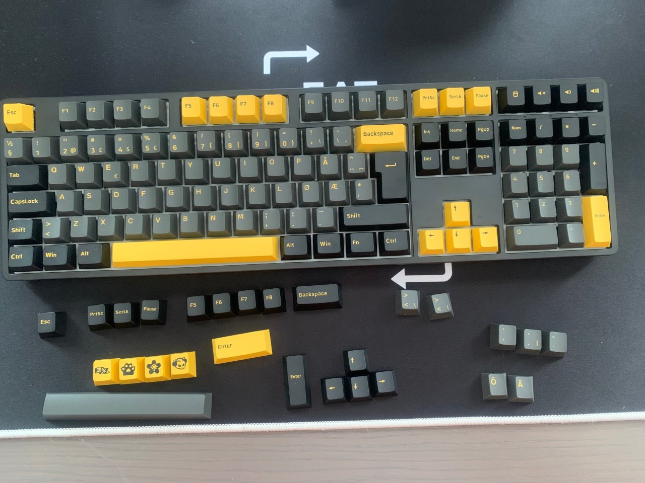 Tastaturet jeg bytter ut er et Ducky One 3 med Gateron milky yellow brytere. Kjøpte Duckyen med Cherry Brown, men likte ikke dem Tanken med å bytte til ett trådløst tastatur var at jeg kan ha det koblet med kabel til gaming pcen, og 2.4GHz mottakeren i dockingstasjonen til jobblaptopen. Dette fungerer fint med Akko tastaturet Byggekvaliteten kjennes god ut, helt på høyde med Ducky, men tastene føles bedre på Ducky. Akko kom med en god del ekstra taster, men litt rart at det kom med gul Enter tast til ANSI oppsett, men ikke til ISO. Det kom satt opp med svensk oppsett, men det fulgte med taster slik at man kan gjøre det om til norsk eller dansk, mye bedre en det nordiske oppsettet som mange tastatur kommer med. Tastaturet har media funksjoner via Fn, men de er ikke merket på tastene. Helt OK USB kabel. CS Jelly Black bryterne er helt OK, men bryteren i "S" knappen på mitt hadde mindre motstand en de andre. Byttet den med en fra en knapp jeg aldri bruker, en av fordelene med hotswap tastatur Totalt sett godt fornøy med Akko 5108B