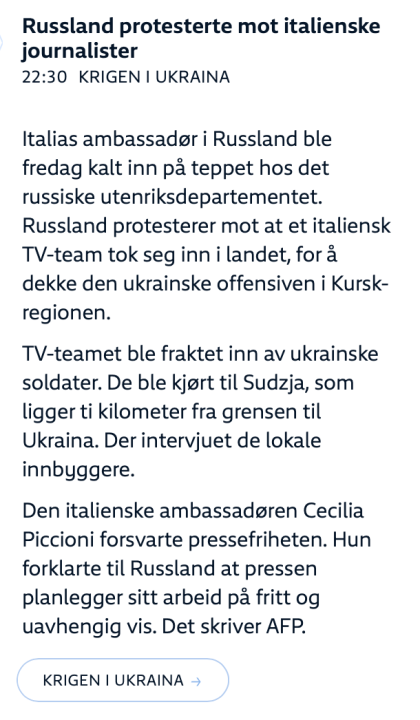 Greia er at når man må sette inn vernepliktige kan man ikke lenger lene seg på at soldatene har signert på en kontrakt, og mange familier forventer at vernepliktige ikke sendes ufrivillig i krig. Nå kommer denne krigen på russisk jord som en direkte konsekvens av krigen man fører i Ukraina, og jeg tror at dette er noe ukrainerne håper skal vekke de russiske soldatmødrene som var svært så aktive i sine protester mot krigen i Afghanistan på 80-tallet. IIRC fikk de til og med møte Gorbatsjov på et tidspunkt, og på 90-tallet fikk de Rafto-prisen for sitt arbeid for fred.