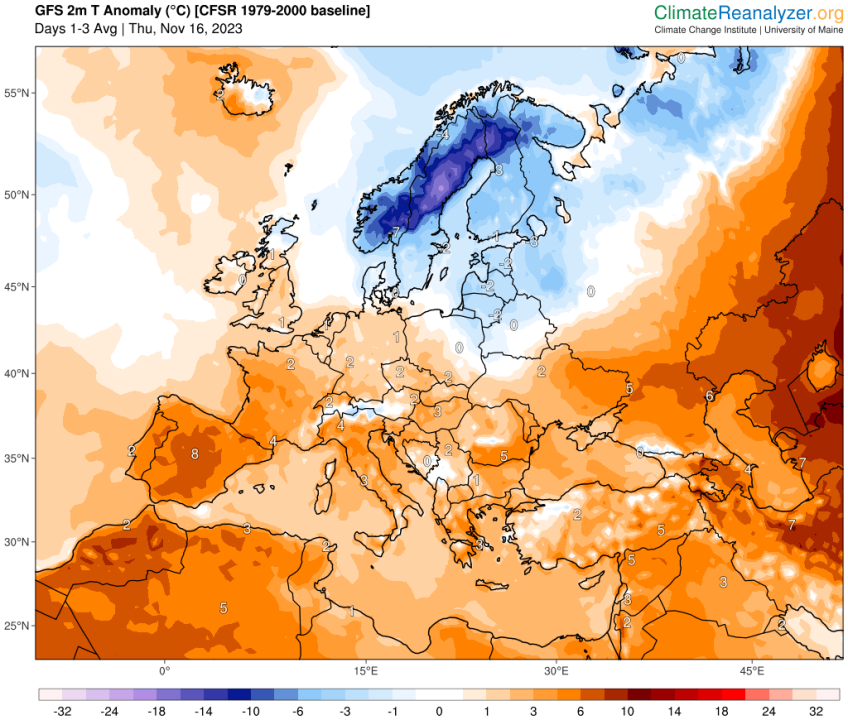 Et unntak altså. Så langt i november ligger temperaturen i Sør-Norge 4-5 grader under normalen. -