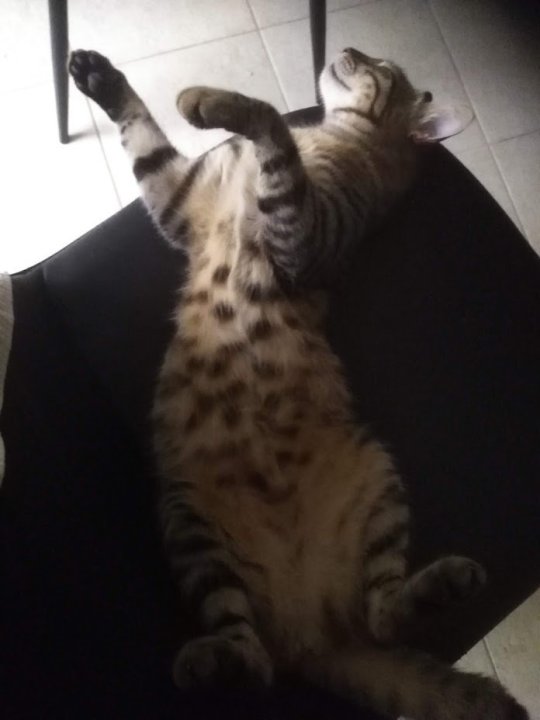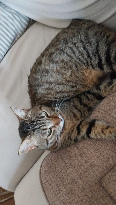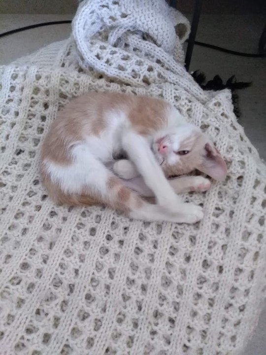 Ja, jeg kan jo slenge på et par bilder 🙂 Jeg hadde en katt, en sterilisert hannkatt ved navn Malaka (gresk for idiot). Plutselig dukket det opp en liten kattunge i hagen, helt alene, lå og skrek under et skap jeg har ute. Tok henne selvfølgelig inn, ga henne mat og navnet Lucy, og ba "storebror" om å være grei med henne. Her er Lucy noen dager etter at jeg fant henne og Malaka som er grei med henne 🙂