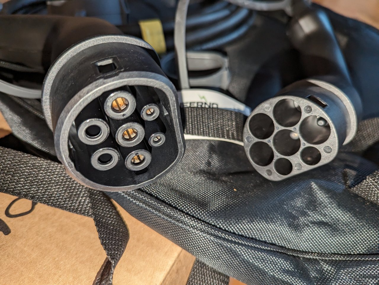 her er kabel jeg har for lading. bruker den kun i å ladde i garasjen i bygget. her er det installert kople billadere for alle beboere. med de ladere må man ha sin egen ladekabel.