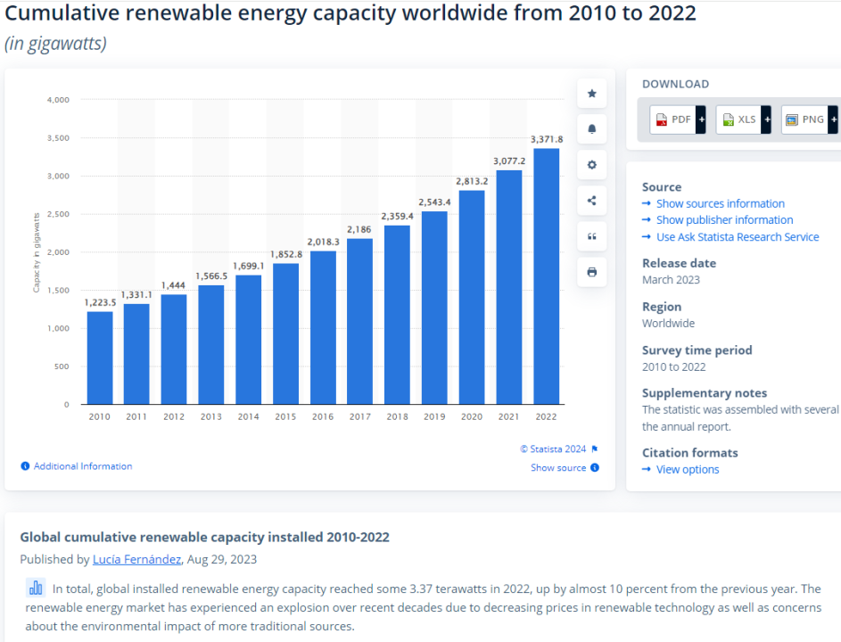 Over de snart 40 årene siden klimakrisen kom på den politiske dagsordenen har det kommet utallige skråsikre påstander fra alt fra synsere til fagtunge miljøer om den variable fornybare energiens uegnethet. Innholdet i disse påstandene kan grovt deles inn i tre momenter: 1) sol og vindkraft er alt for dyr, 2) sol og vind kan aldri monne, og 3) det er angivelig umulig å tilknytte mye sol og vindkraft til nettet grunnet dens uforutsigelige variasjon. Disse påstanede er alle som en gjort grundig til skamme over samme periode. Prisen på sol og vindkraft har blitt redusert til under en hundredel av hva den var og er nå billigste mulig tilgjengelige kraft som kan bygges ut. Resultatet er en voldsom vekst i utbyggingen av sol og vindkraft i verden med årlige vekstrater på rundt 10 %. Akkumulert var det ved inngangen til 2023 installert ca. 3,3 TW produksjonskapasitet fra sol og vind. Dette er så mye at de (til sammen) leverte ca. 1,3 ganger så mye kraft i 2022 som verdens samlede kjernkraftverk leverte (12 % av verdens elkraftproduksjon versus 9,2 %): Nå er det vist energilagringsteknologien som trengs for å balansere nett med store andeler fornybar kraft som hevdes å være alt for dyr til å kunne gjøre fornybar kraft til løsningen på verdens behov for grønn energi. Det er ingen grunn til å ta disse skråsikre påstandene mer på alvor enn det var til de utallige skråsikre påstandene om sol og vinskraften. Prisen på batterier og annen lagringsteknologi er høy i dag. Men akkurat like sikkert som at kostprisen på sol og vindkraft krympet i takt med økningen av bruken av disse kraftteknologiene kommer det samme til å skje med energilagringsteknologien grunnet teknologiske forbedringer og stordriftsfordeler. -