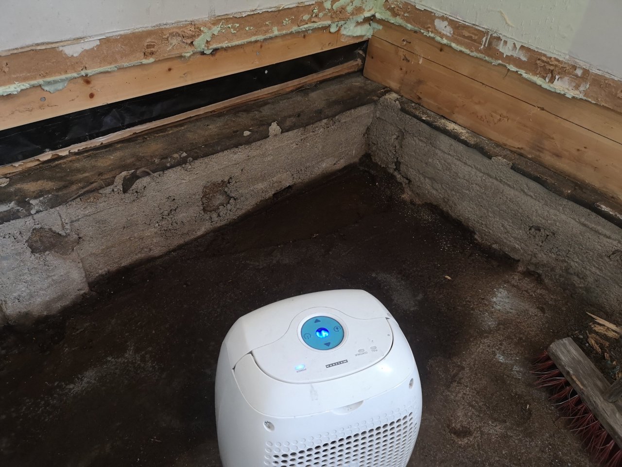 Fjernet et golv totalt da jeg fryktet råte eller sopp, overrasket over fravær av råte. Rommet er 4x2 meter og har 35-40 cm grunnmur rundt hele rommet. Da det regnet så jeg hvor mye vann som trenger inn der. Vann kommer inn langs fjell under grunnmur. Vil f.eks. slamming eller annet kunne lage et vanntett skott mellom fjell og grunnmur? Hedy K11??? Poenget er tett mellom fjell og mur, som holder i noen tiår... Innspill ønskes. Skal selvsagt se muligheter utenfor grunnmuren også, men vanskelig terreng gjør at det blir mye tilsig av vann derfra. Det er en gang lagt på litt betong utenfor, men hindrer ikke vanntilsig.