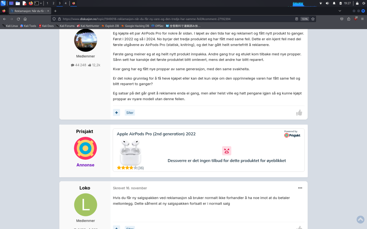 Forutsatt at det faktisk er airpodsene som er problemet, og ikke appen/telefonen du bruker så har selger plikt til "avhjelp". Du har kanskje søkt om reklamasjon på google og ser at det må 2 reparasjonsforsøk og 3 samme feil til før man definitivt kan reklamere. Nå får noen rette meg om jeg tar feil, men jeg tror dette er opphevet og erstattet i 2023 og lovteksten nå er mye mer tåkete. Du kan lese den selv: forbrukerkjøpsloven paragraf 29 og 30. Jeg er ikke ekspert i forbrukerjuss, men mener den nye loven kan tolkes i ditt favør i dette tilfellet. Det er ikke noe krav om 2 forsøk på reparasjon før den samme feilen oppstår en tredje gang osv. Forresten veldig tilfeldig kom denne annonsen opp i akkurat denne tråden