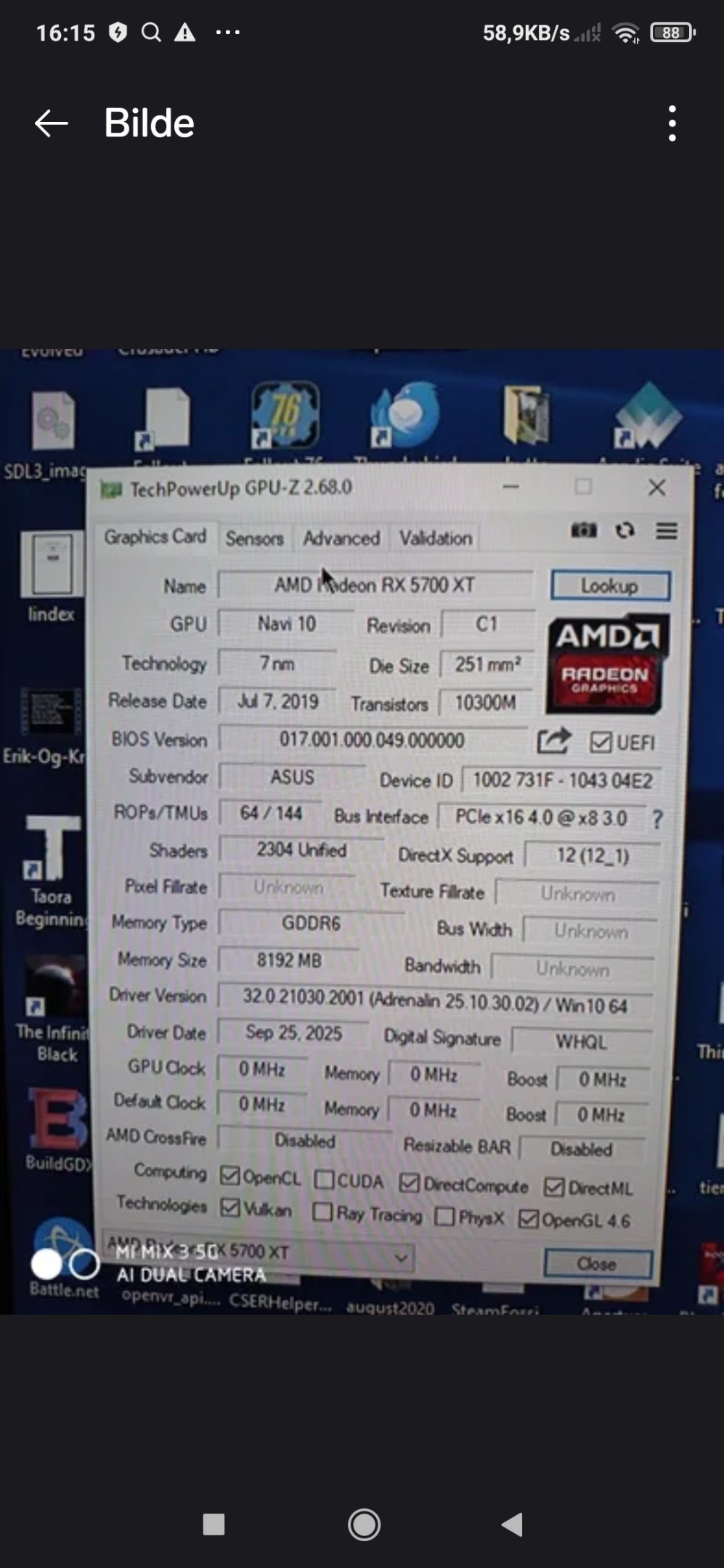 Tror gpu er defekt. Hvorfor skulle ellers stå som 0 mhz? Klarer noen se kan være feil bios? Men testet funksjonell kort der funger ikke hdmi på eldre tv skjerm ful hd. Antakelig hdmi 1.4 så krav om hdmi 2.0 eller nyere? Må bruke displayport temperatur blir høy rundt 90 grader må sette andre kortet på 4300 rpm i 10 minutter før spiller Hjelper litt men ikke bra nok.
